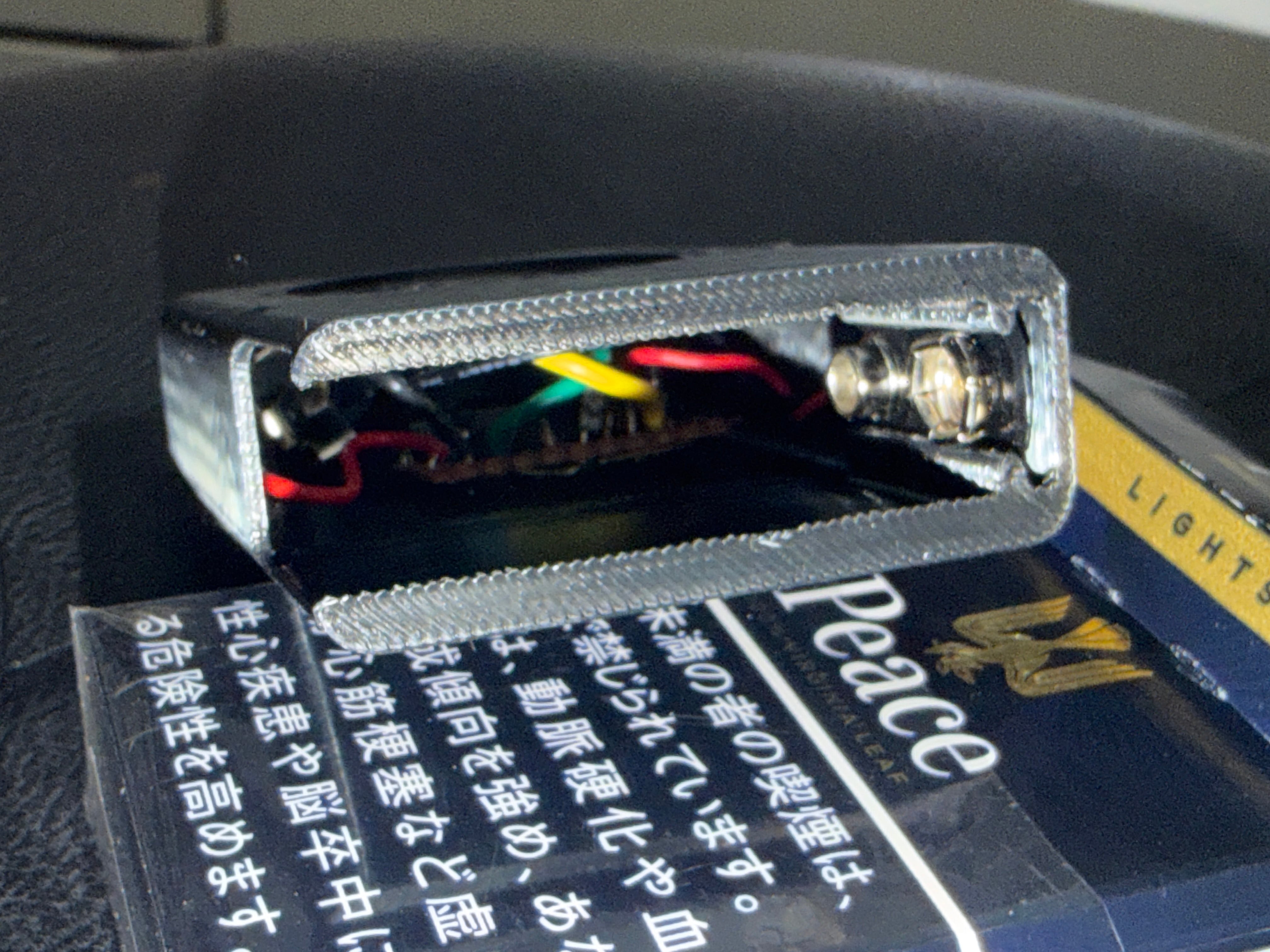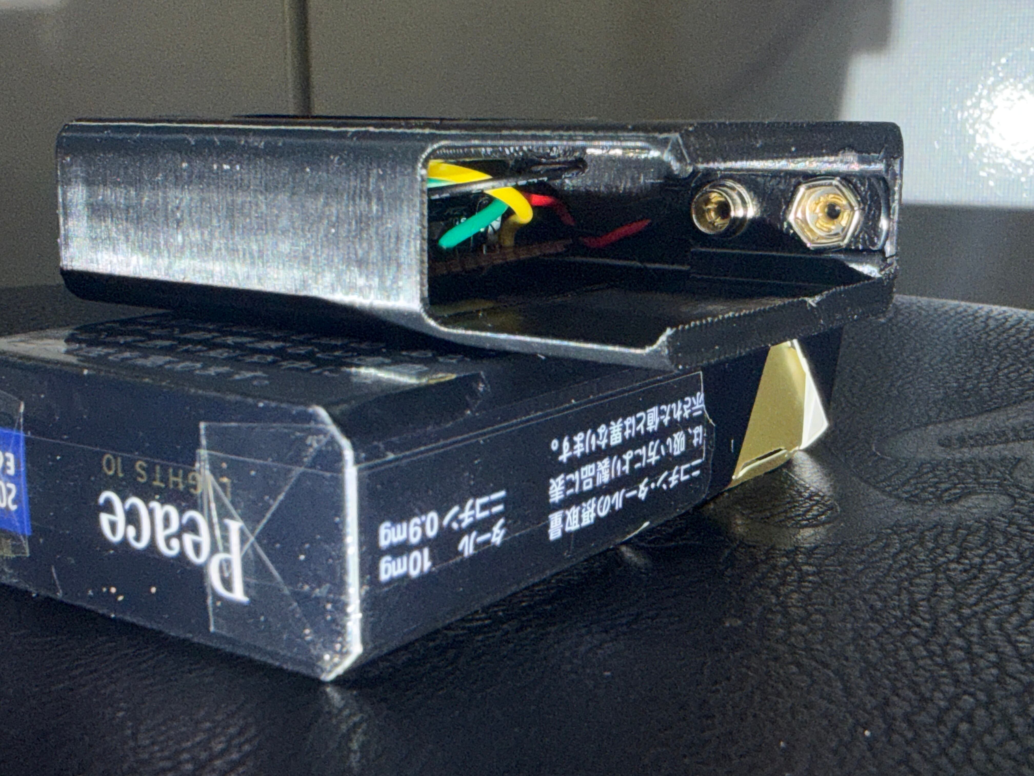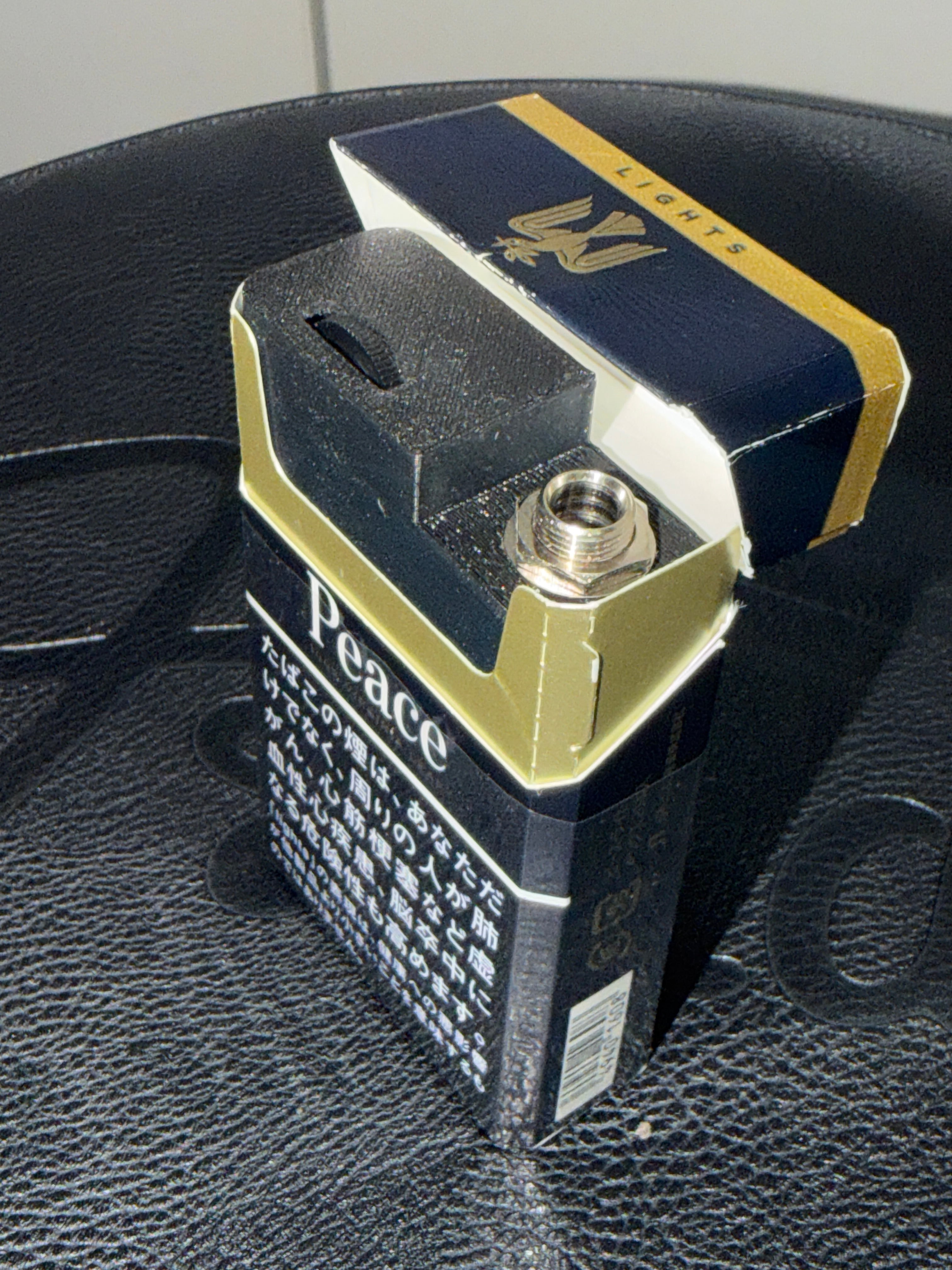 Peace Liteを基準に製作していますが、お手持ちのタバコ箱に入るかどうかはサイズをご確認ください。ケースは3Dプリンター製作。